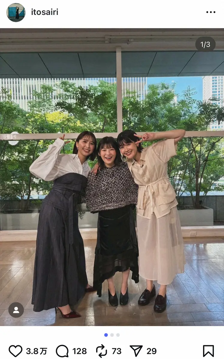 これにファンからは「見たよ!仲良し3人、素敵でした」「3人のワチャワチャ感がものすごく伝わってきました」「お3人さまの女子トーク、楽しかったです!!」「朝からテンポの良い楽しいトークが見れて元気が出ました!」などの声が寄せられた。
