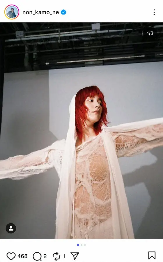 ファンは「何故か似合ってる」「カッコいい」「素敵です」「絡まってしまった人みたい」「蜘蛛の巣みたいな服」などの声を届けていた。