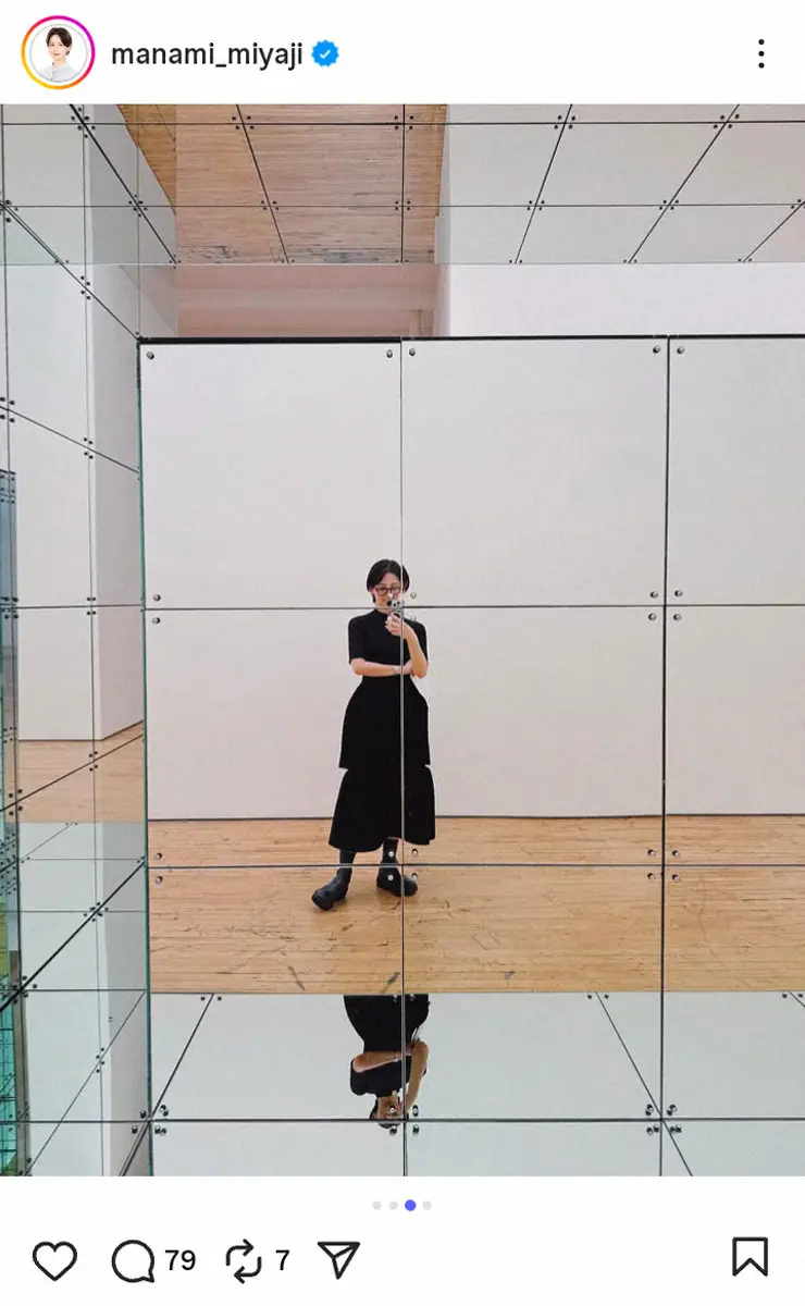 「今週は夏休みをいただいています」と夏休みを報告した宮司アナ。黒のモードなワンピース姿を披露。鏡越しの自撮りやキャップに黒縁眼鏡を合わせたラフなコーデも投稿し、「また来週からよろしくお願いいたします」とつづった。