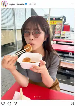 渋谷凪咲 SAグルメをパクリ! 兄撮影のオフショットにファン歓喜「かわいい」「おいしそう」の声