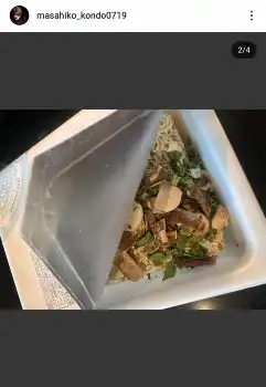 近藤は「パクられた~(笑)」と書き始め、「ペヤング」の「贅沢やきそば 本物の松茸」の写真を投稿した。