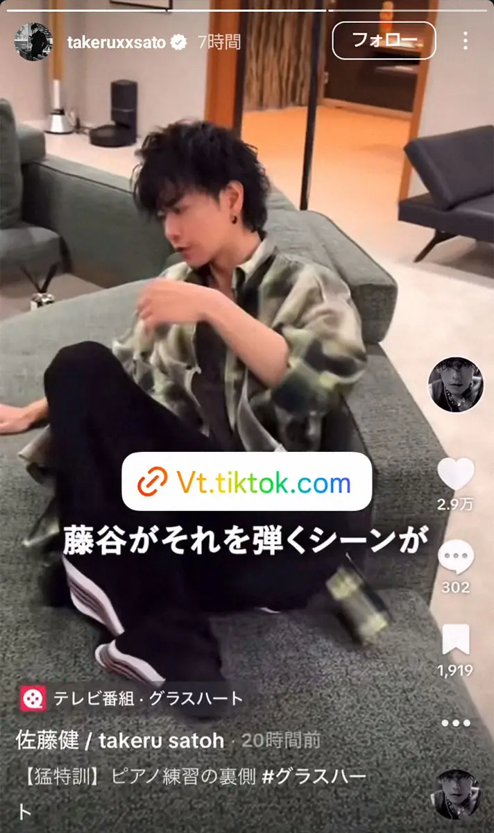 佐藤はNetflixシリーズ「グラスハート」で、孤高の天才ミュージシャン・藤谷直季を演じている。佐藤自ら映像化を念願し、自ら企画、共同エグゼクティブプロデューサーも務めている作品だけに、「グラスハートをやる上で、ピアノの練習をしないといけなかったんですよ。ここで寝てるんですよ。寝て、起きると、“眠いなー”と思ってもたどり着くじゃん」と、ソファ近くに置いてあるキーボードまで、はいながら行き弾く様子を披露。「そうすると練習するようになるのよ!」とし、眠くなるとまたソファに戻るというストイックな生活の一端を披露。