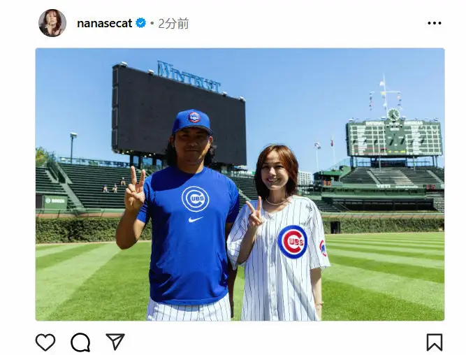 大のプロ野球DeNAファンとしても知られる相川は「今永くんとハマスタ以来の再会でとても嬉しかったです!!」と書き出しカブスの今永昇太投手との2ショットを投稿。