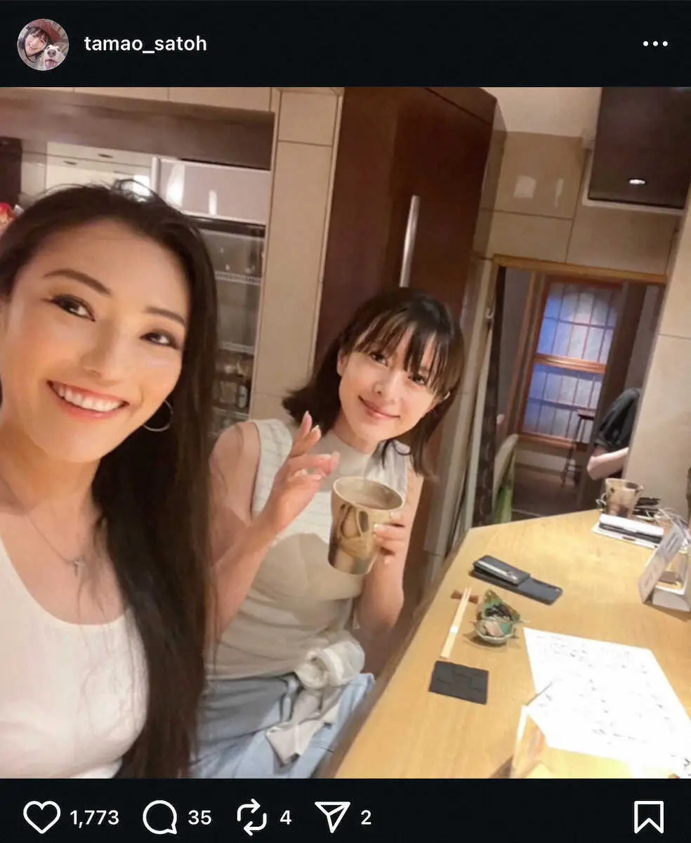タレントのさとう珠緒(52)が4日までに自身のインスタグラムを更新。初代ミニスカポリスメンバーとの“サシ飲み”を報告した。