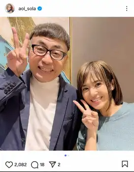蒼井そら 「15年ぶり」共演のお笑い芸人との2ショット披露 ピースサインで笑顔 私生活では双子の母