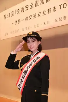 玉田志織 警察官の制服姿で世田谷交通安全大使