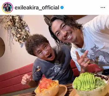 EXILE AKIRA 超大物芸人との“かき氷デート”ショットに反響「めちゃめちゃいい笑顔」の声