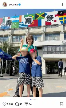 蒼井そら 「26年ぶりに母校に」「エモぉ~」6歳双子の息子との親子3ショットに「優しい笑顔」の声