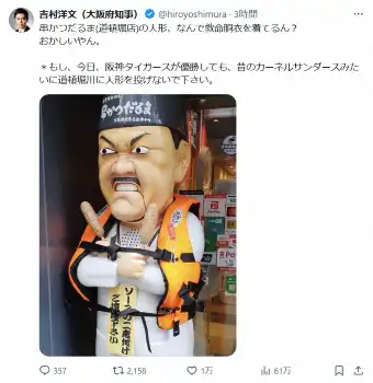 道頓堀にミャクミャクがダイブ!! “あの呪い”心配する声 「40年の時を経て」「また暗黒」