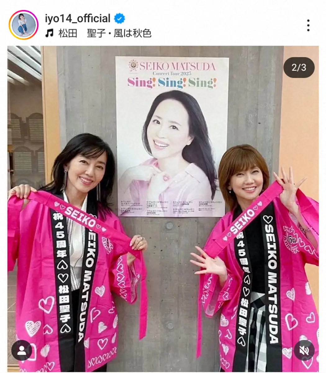 松本伊代の公式インスタグラム(@ iyo14_official)から 松本伊代 親友・早見優と一緒に憧れ「永遠のアイドル」のコンサート参戦… ギャラリーで見る この記事のフォト 2025年09月07日の画像一覧 もっと見る 2025年09月07日の画像をもっと見る