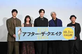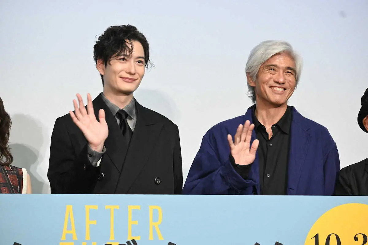 俳優の岡田将生(36)と佐藤浩市(64)が9日、都内で映画「アフター・ザ・クエイク」(監督井上剛、10月3日公開)の舞台あいさつに出席した。