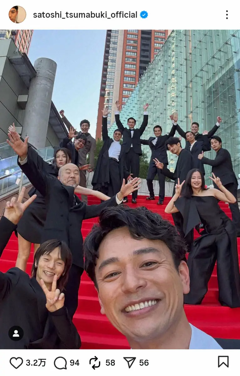 俳優の妻夫木聡(44)が10日、自身のインスタグラムを更新。9日に行われた主演映画「宝島」(監督大友啓史、9月19日公開)の東京プレミアのオフショットを公開した。