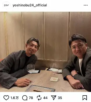 高橋由伸氏 永遠の“宿敵”と食事報告 2Sにファン歓喜「胸熱」「球界屈指のイケメン」「人脈すごい」