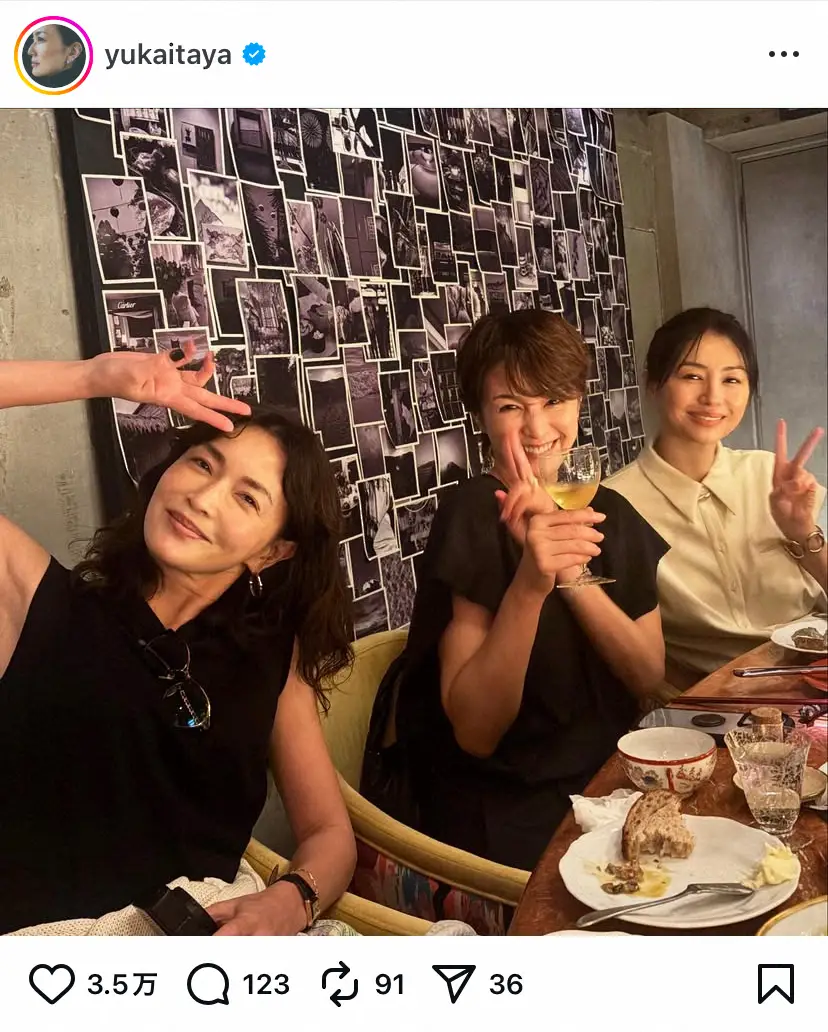 板谷は自身が撮影したものと思われる、女優の長谷川京子、吉瀬美智子、井川遥の3ショットをアップ。4人は仲が良いことで知られ、以前もSNSに4人での食事会ショットを投稿している。