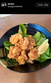 DAIGOは「今日の晩御飯は!? またまたまた本気の唐揚げ!!DAIGOも台所で習った唐揚げ!!」とつづり、テレビ朝日系の自身のMC料理番組「DAIGOも台所~きょうの献立何にする?」で学んだと明かした。
