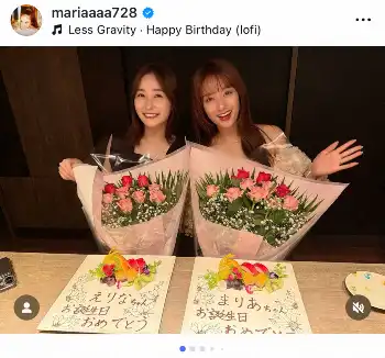 谷まりあ 中学時代から友人の人気アナウンサーと誕生祝い2S フォロワー「姉妹みたい」の声
