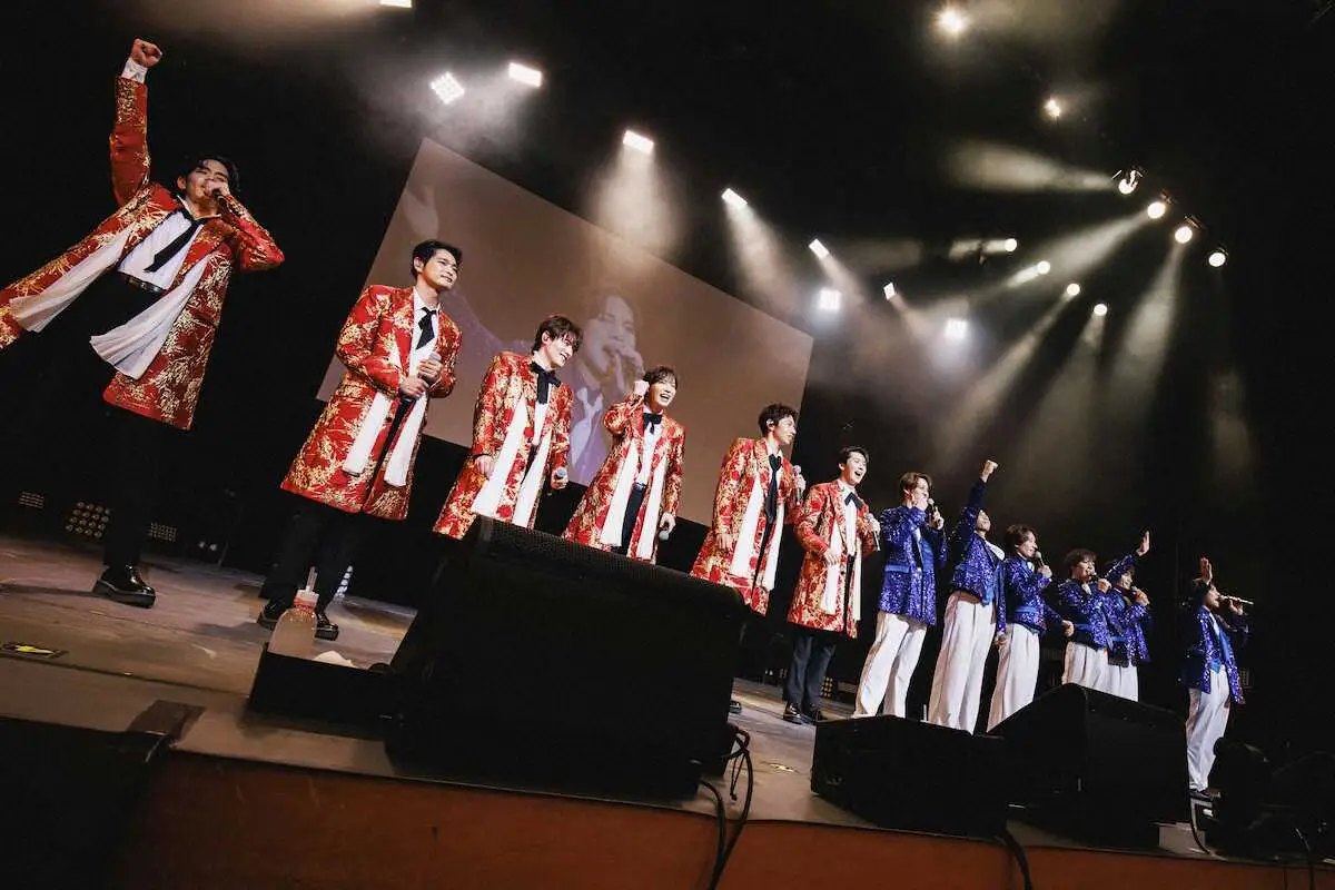 <SHOW-WA&MATSURI コンサート 2025 in 明治座>囲み取材に応じるSHOW-WA&MATSURI。(前列左から)渡辺真、寺田真二郎、小野寺翼、向山毅、松岡卓弥、井筒雄太、(後列左から)山本佳志、橋爪健二、塩田将己、鈴木渉、青山隼、柳田優樹(撮影・井利 萌弥) Photo by スポニチ SHOW―WA&MATSURI デビュー1年目で初の明治座立った!「奇跡のよう」紅白… ギャラリーで見る この記事のフォト 2025年09月14日の画像一覧 もっと見る 2025年09月14日の画像をもっと見る