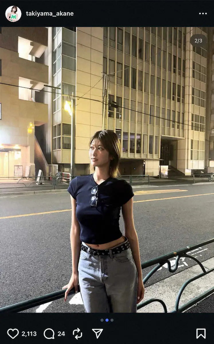 ABEMAの瀧山あかねアナウンサーのインスタグラム(@takiyama_akane)から ABEMA人気アナ「秋が近づいて…」 へそ出しデニムコーデS!「スタイルよく… ギャラリーで見る この記事のフォト 2025年09月14日の画像一覧 もっと見る 2025年09月14日の画像をもっと見る