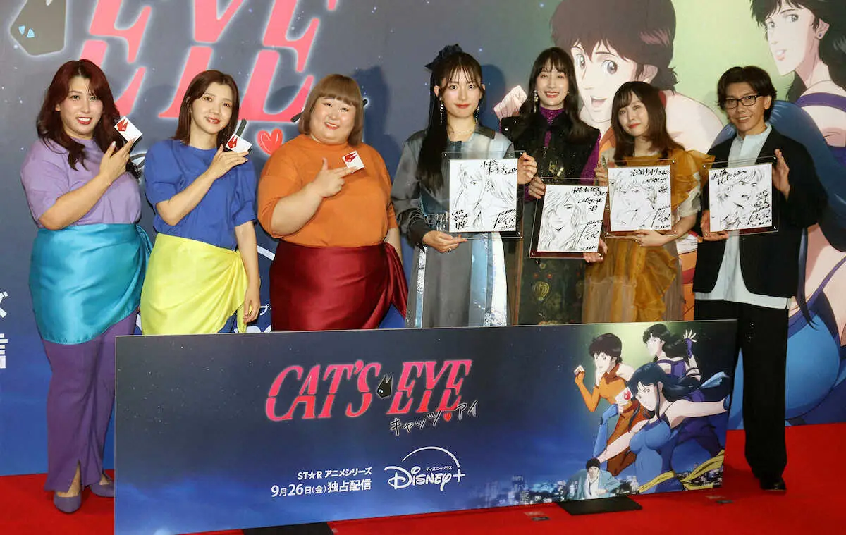 お笑いトリオ「3時のヒロイン」が17日、都内でディズニープラスのアニメシリーズ「キャッツ アイ」(26日から配信)の配信直前イベントに出席した。