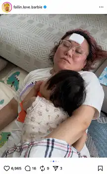 バービーは「今年の夏、何回“暑い”と言いましたか?私は数え切れません」と書き出すと、娘を抱いたまま昼寝をする様子を公開。額にコットンを乗せたまま、ぐったりと眠る近影も投稿した。