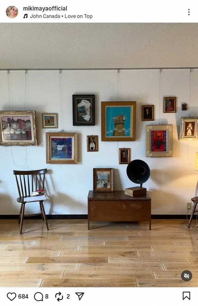 「そうして生まれた私だけの『記憶の壁』 そこに並ぶものたちは時に懐かしさを、時に新しいひらめきを運んできてくれます」と、大小の額が飾られた室内の写真を公開。「では 心に涼やかな風が吹くような一日でありますように」と結んだ。