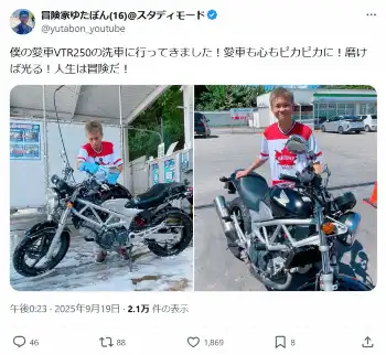 ゆたぼん16歳 「洗車に行ってきました!」愛車公開 「渋い」「いいセンス」「堅実」と反響