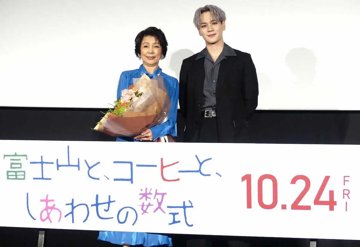 JO1の豆原一成(23)と女優の市毛良枝(75)が18日、都内でダブル主演映画「富士山と、コーヒーと、しあわせの数式」(監督中西健二、10月24日公開)の先行上映会に登壇した。
