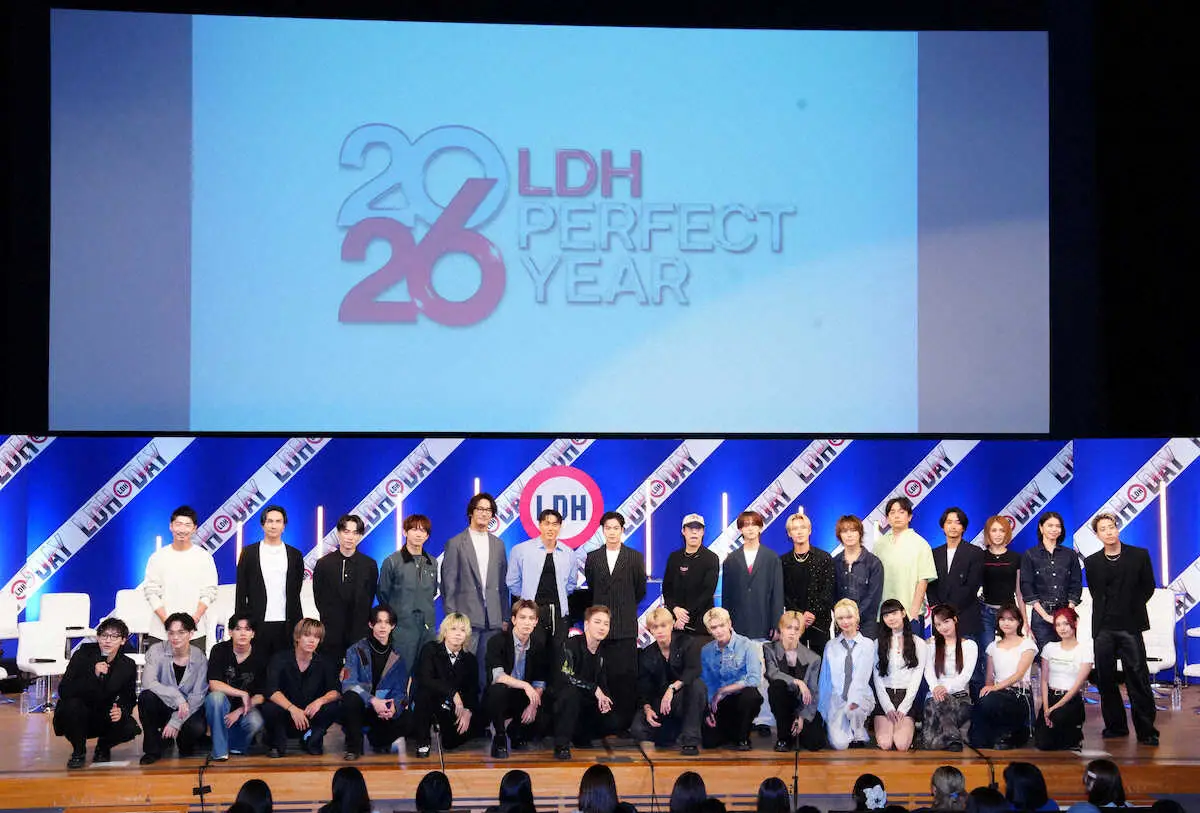 EXILE TRIBE(一族)らが所属する「LDH」が創業記念日の18日、都内でイベントを開き、6年に1度の祭典「LDH PERFECT YEAR」を来年に開催すると発表した。祭典に出演する総勢16組、32人のアーティストが出席。前回の2020年は新型コロナ禍でイベントのほとんどが中止となっただけに三代目 J SOUL BROTHERSのNAOTO(42)は「6年ぶりのリベンジの機会。あの時のたまった思いを晴らす時が来た」と気合を込めた。