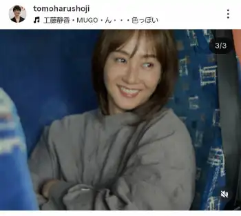 庄司は「バスツアーの後ろの席の人がタイプだったので」と投稿し、バスのシートに座る妻でタレントの藤本美貴のオフショットを公開。