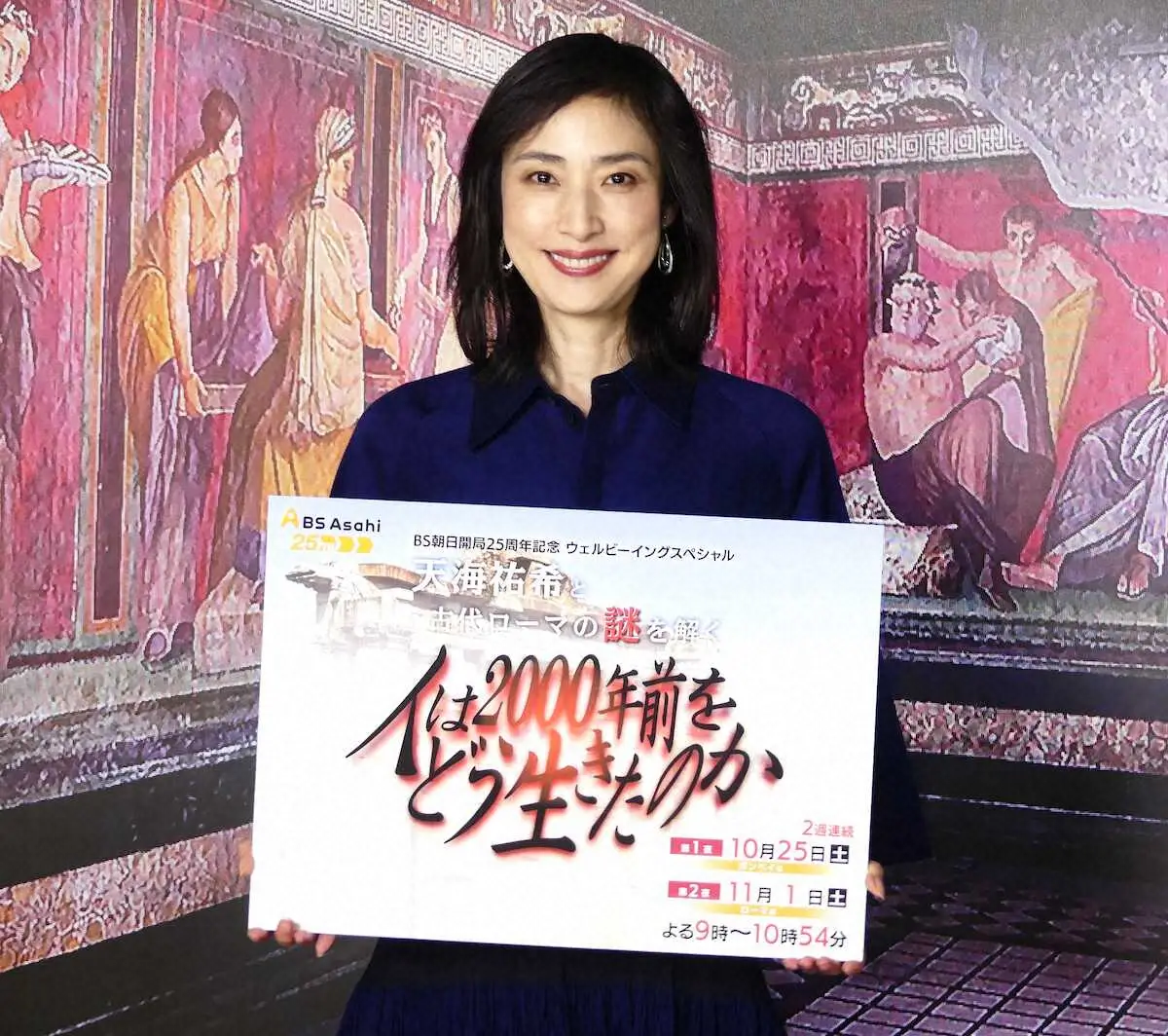 女優の天海祐希(58)が19日、都内で10月25日から2週連続で放送されるBS朝日特番「人は2000年前をどう生きたのか 天海祐希と古代ローマの謎を解く」(後9・00)の制作発表を行った。2000年前の人々の暮らしを探るために、天海がポンペイやローマの遺跡を巡り、平和と繁栄の秘密に迫っていく。