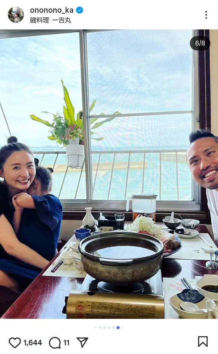 「結婚5周年の熱海旅行~」と書き出すと、海辺の料理店内で鍋を楽しむ自身の動画や、自身と愛娘、塩浦との3ショットなどをアップ。「の前に、小田原に寄り道して ずーっと行きたいと思っていた 磯料理 一吉さんへ 盛り盛りのお刺身からの、金目鯛のしゃぶしゃぶ 漁師メシ、最高すぎた~!」と説明した。