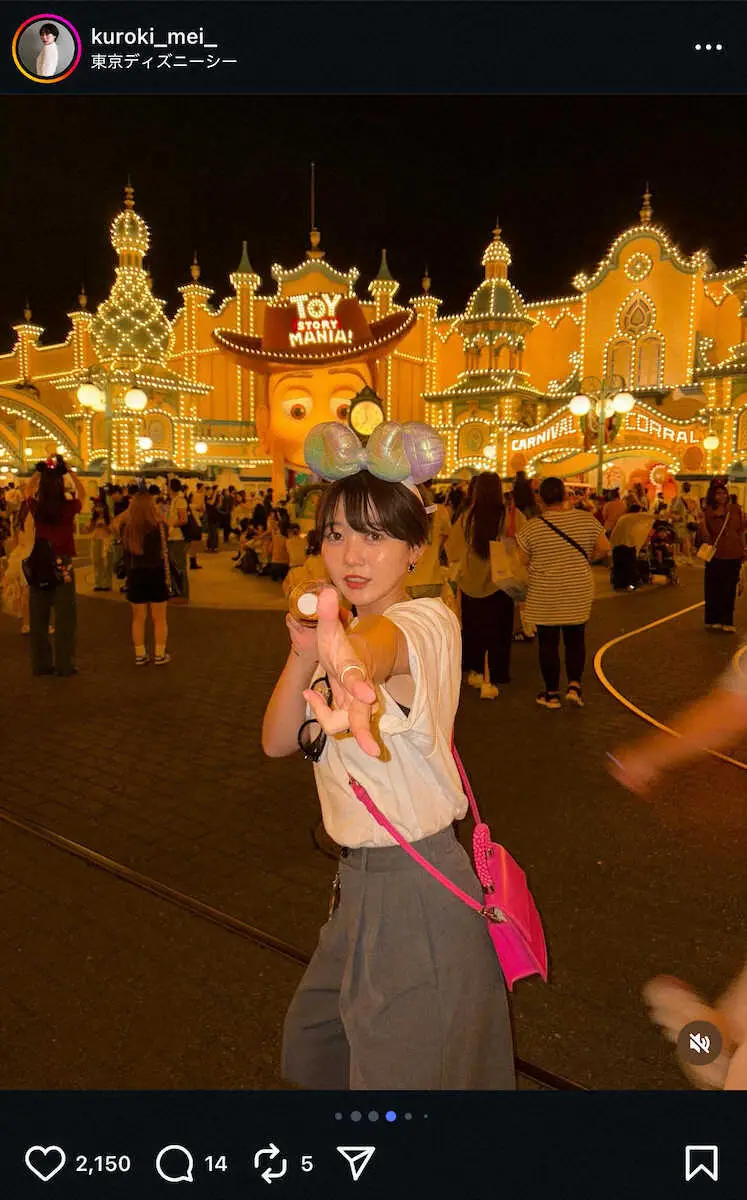 黒木芽依のインスタグラムから(@kuroki_mei_) ロッテ“レジェンド投手”の愛娘がTDS満喫!ネット反響「ミッキーより可愛い… ギャラリーで見る この記事のフォト 2025年09月23日の画像一覧 もっと見る 2025年09月23日の画像をもっと見る