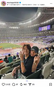 みちょぱ 夫・大倉士門と世界陸上観戦!密着夫婦ショットに「ラブラブ」「相変わらずアツアツ」の声
