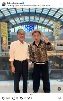 遠近法? キンタロー。「私の産みの親」と密着2ショに感激、ファン爆笑「面白すぎる」「顔のデカさよ」