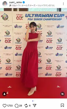 鷲見玲奈 真っ赤なノースリワンピでシュワッチ!「二の腕痩せた気がする」、ファン絶賛「最高」
