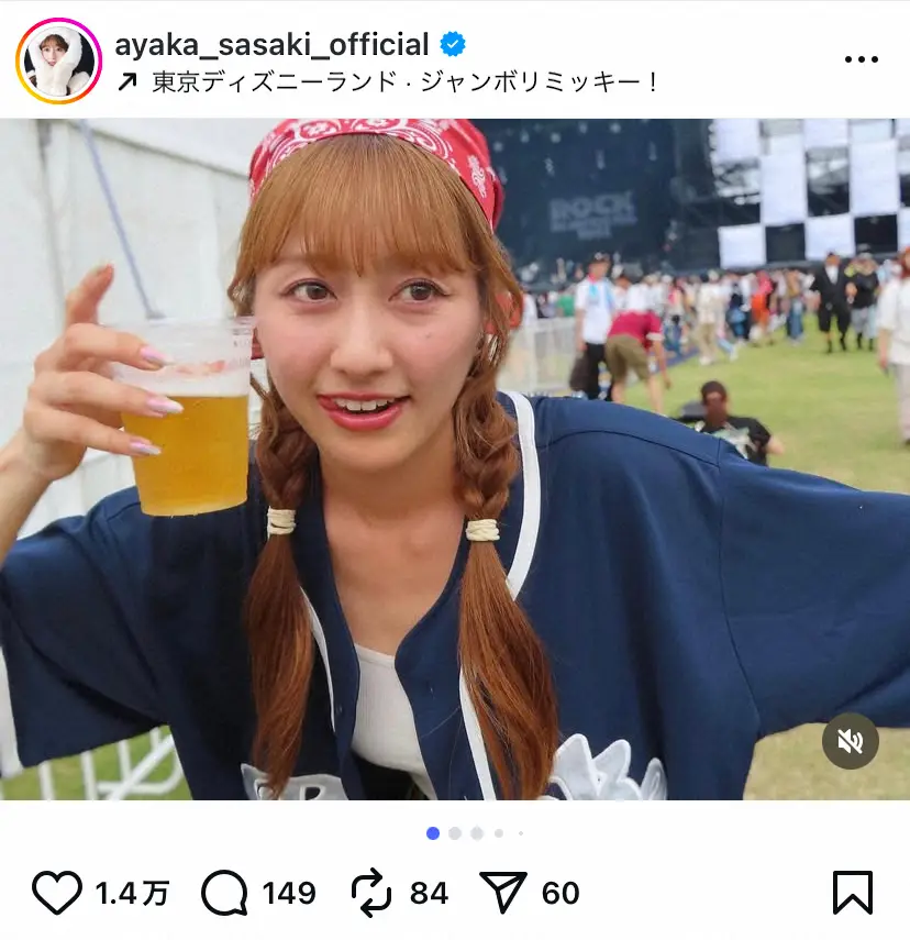 佐々木は、今月13~15日、20、21日に千葉市蘇我スポーツ公園で開催された「ROCK IN JAPAN FESTIVAL 2025」を訪れたことを報告。この日は「まだ続きます」とコメントすると、ビールを片手にペロッと舌を出すショットを披露した。