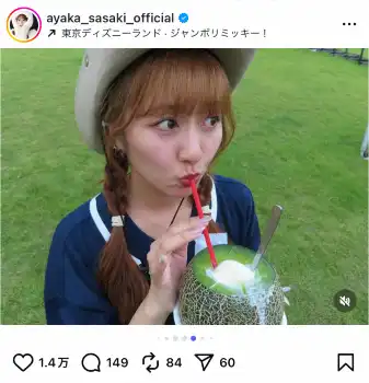 続けて、三つ編み姿でまるごとメロンソーダを味わう様子も公開。「乾杯あーりん」「あーコーデ」「rockinjapan」「ロッキン」「あーりんぐらむ」とハッシュタグを添えた。