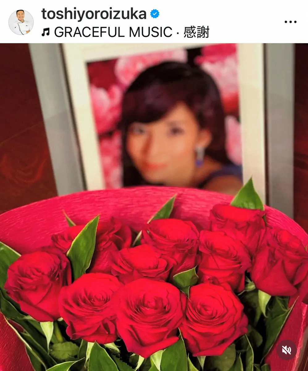 「薔薇の花言葉って本数によって変わるのご存知でしたか?一本は『一目惚れ』三本は『告白』私にとって十本は『感謝』。私は女房に対して『永遠の愛』とよく言われる事に小っ恥ずかしさと言うか、違和感、抵抗があります」としつつ、「言うなれば『永遠の感謝』です」と鎧塚節で妻への思いをつづった。