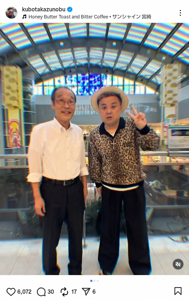 宮崎県出身のお笑いコンビ「とろサーモン」久保田かずのぶ(45)が24日までに、自身のインスタグラムを更新。同郷の人物との“2ショット”写真を公開した。