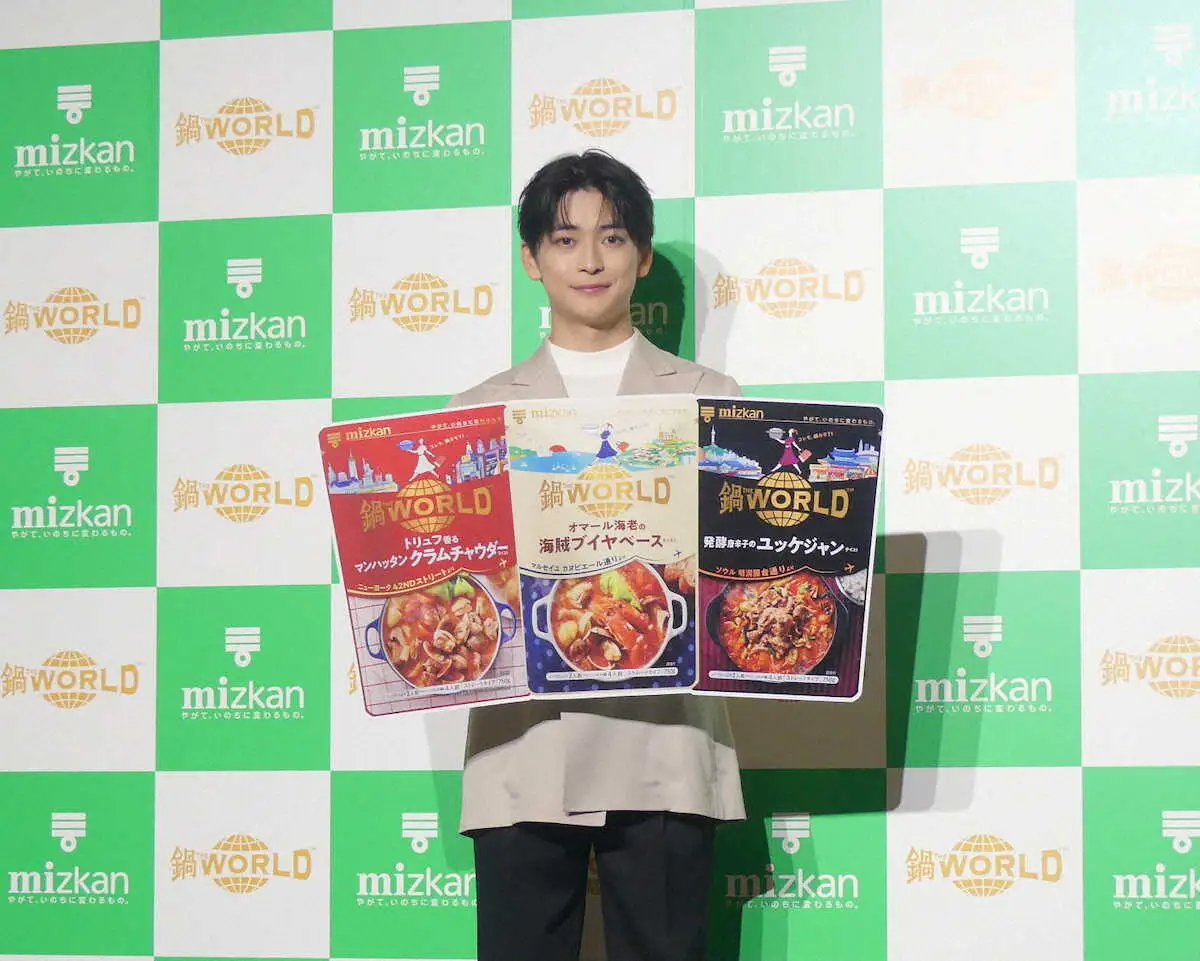 俳優の高橋文哉(24)が24日、都内でミツカンの鍋つゆ新商品「鍋THE WORLD」の新CM発表会に出席した。