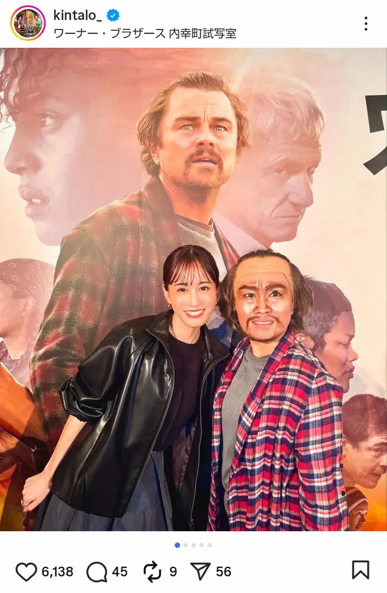 「当たり前ですが、顔の大きさからなにまで全然違いました」と興奮気味につづり、最後に「私は劇中のレオ様の扮装してます」と注意書きも添えた。