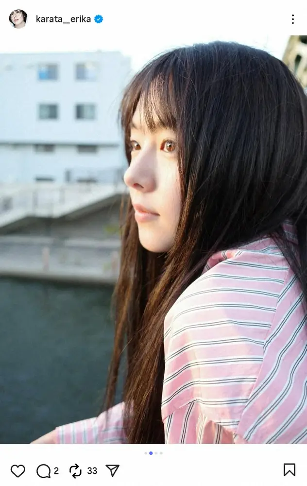 唐田はストーリーズで「髪型作品ごとに変わりすぎて、今どれって感じですが 今はこのロングです」と投稿。ピンクのシャツ姿で、ロングヘアになった最新ショットを披露した。