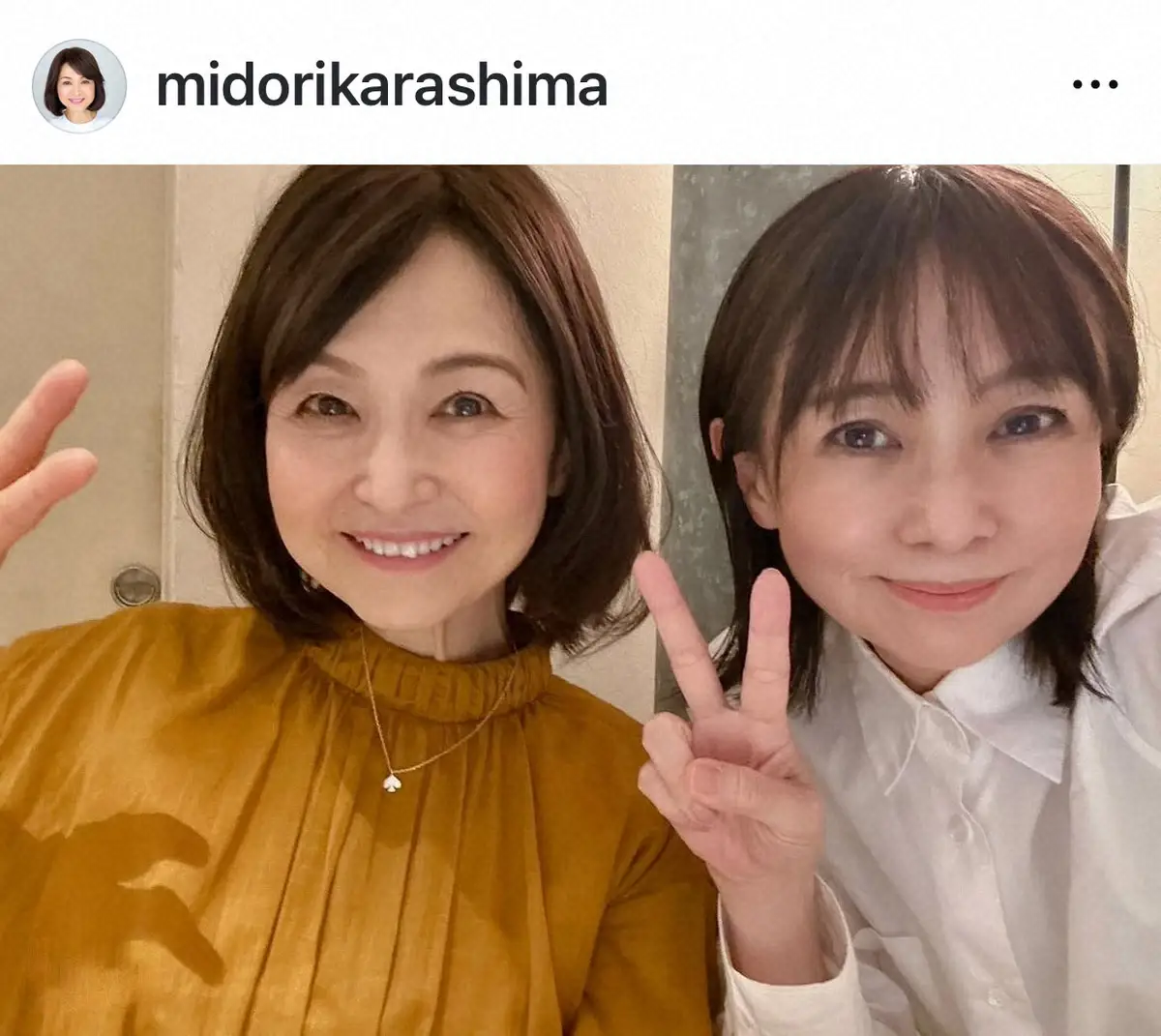 シンガー・ソングライターの辛島美登里(64)が25日、自身のインスタグラムを更新。仲良しのアーティスト・永井真理子(58)とのツーショットを披露した。