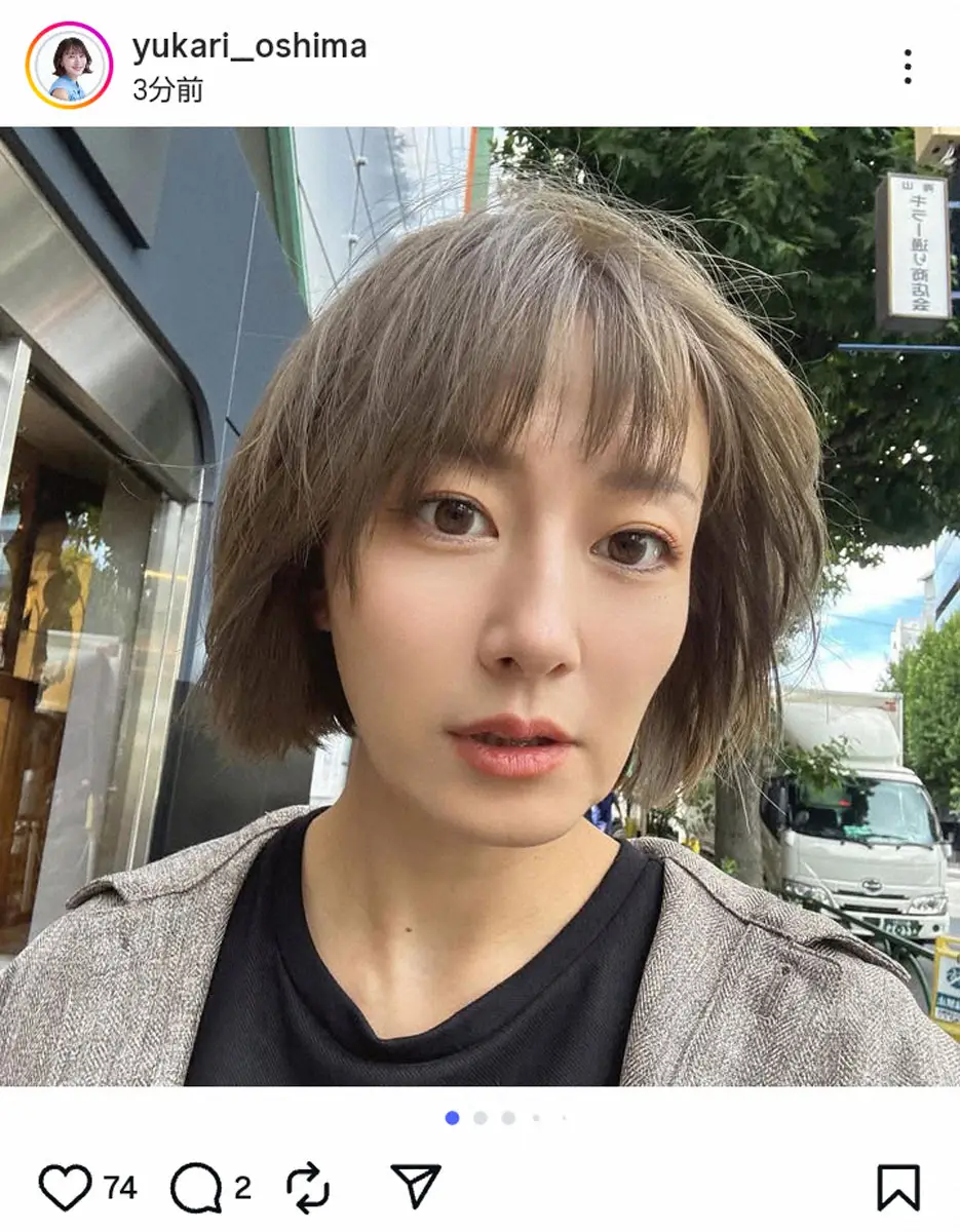 フリーアナウンサーの大島由香里(41)が25日、自身のインスタグラムを更新。ブリーチし、ショートボブにイメチェンした姿を披露した。