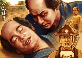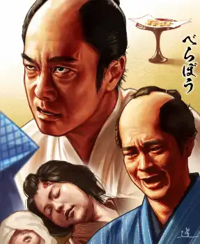 イラストレーターの石井道子氏が描いたNHK大河ドラマ「べらぼう」大河絵第36話 あっぱれ恋川春町――最後まで戯作に生きた命懸けの大ボケ