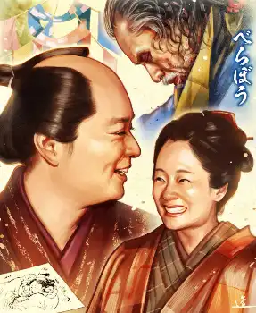 イラストレーターの石井道子氏が描いたNHK大河ドラマ「べらぼう」大河絵第22話 プッ…プップ~ 春町が“はじけた”笑顔が咲いた革命的な夜
