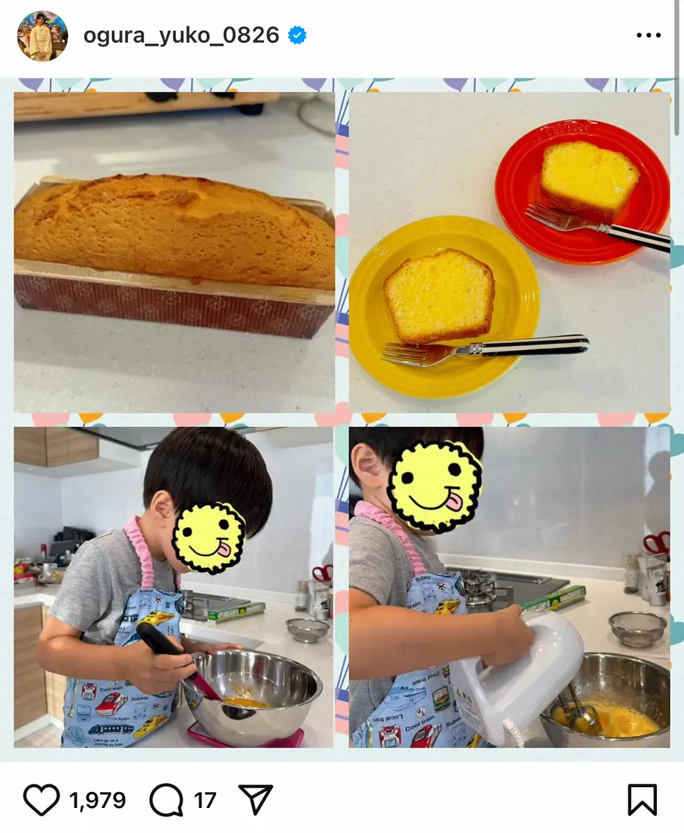 小倉優子 5歳の三男とパウンドケーキ作り「最近、お料理に興味津々」 完成度の高さに「凄い」の声