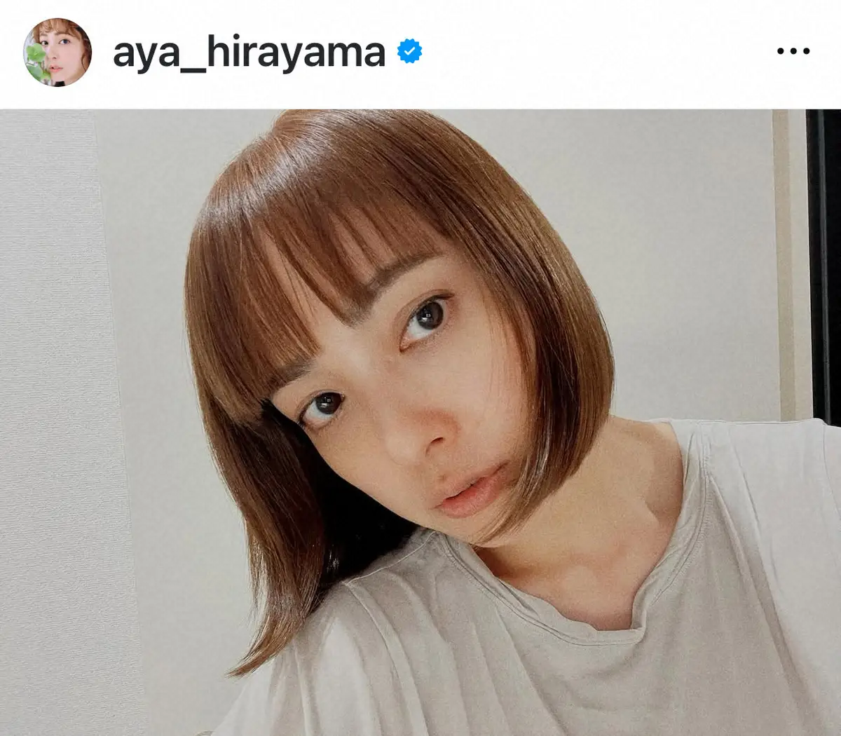 女優の平山あや(41)が29日、自身のインスタグラムを更新。約20センチバッサリカットしたイメチェンショットを披露した。