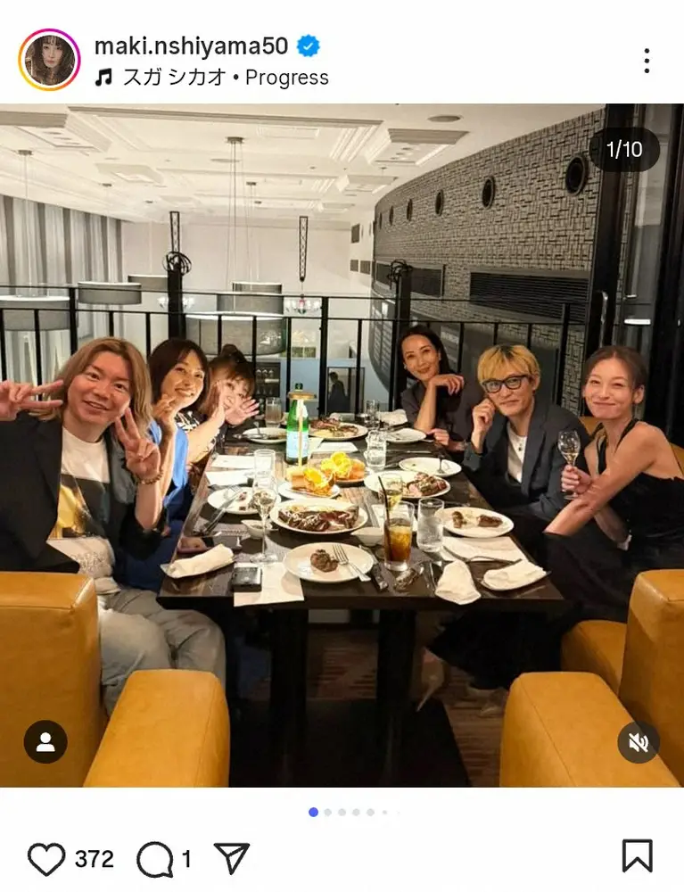 タレントの西山茉希(39)が30日、自身のインスタグラムを更新。豪華芸能人らとステーキを楽しむショットを披露した。