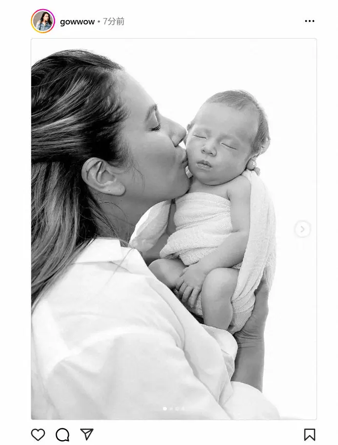 ガウは「先日、無事に元気な女の子を出産しました!母子共に健康で新しい日々が始まってもう早速寝不足ですがとーーっても幸せです。毎日この声、この匂い、この子の存在が愛おしくて涙が込み上げてくる」と報告。